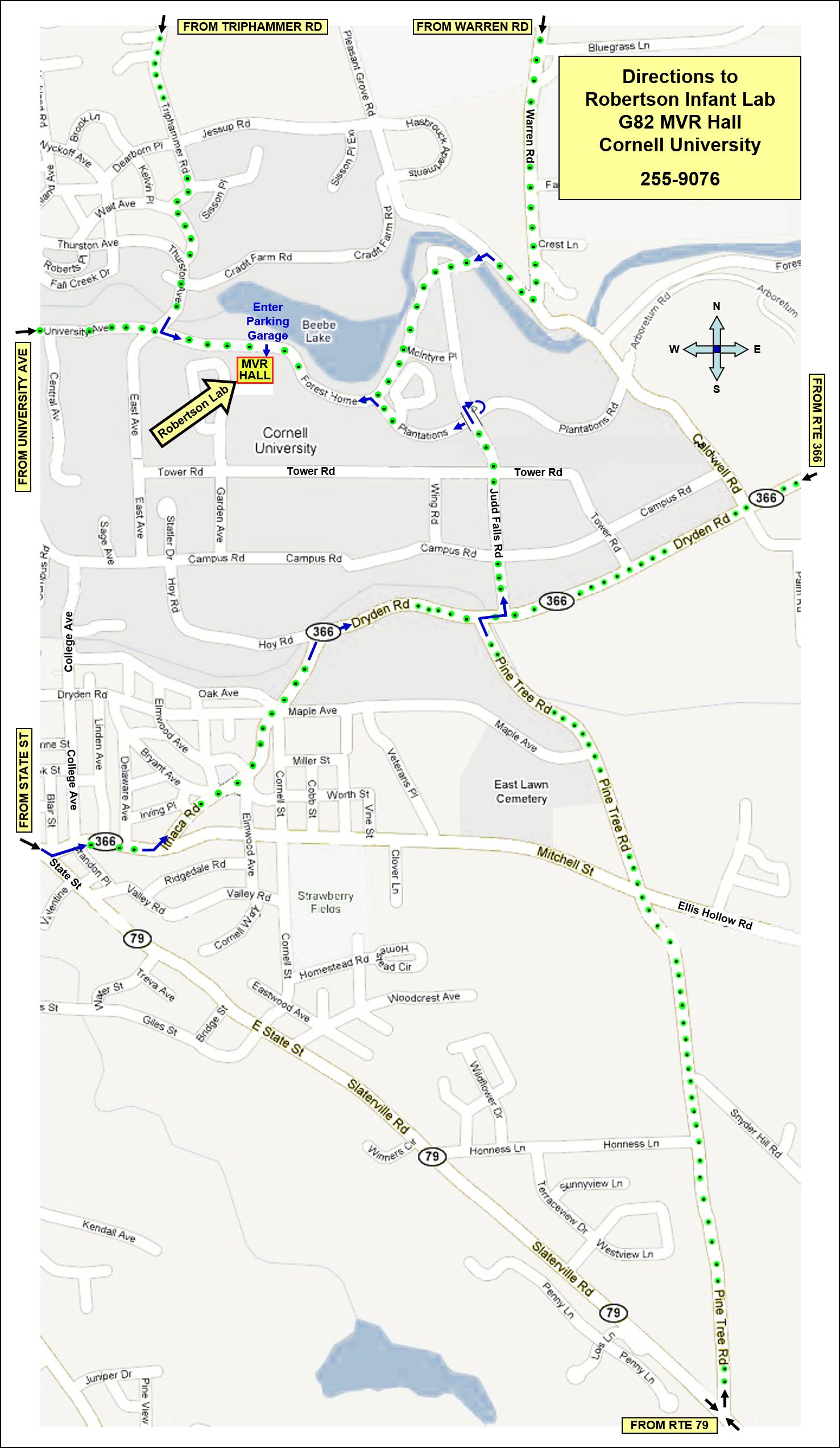 - Take University Ave up the hill heading east toward Cornell.